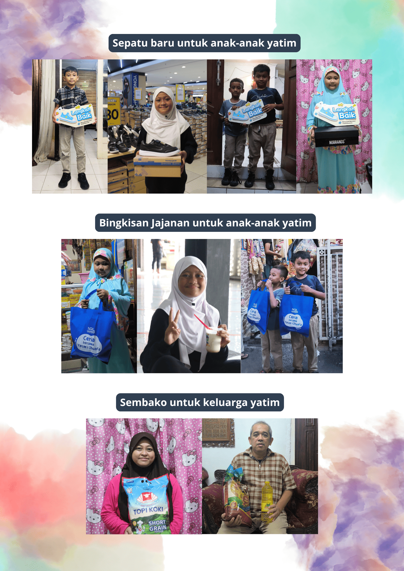 Dalam event ini, anak-anak yatim juga mendapatkan santunan, bingkisan, dan konsumsi.