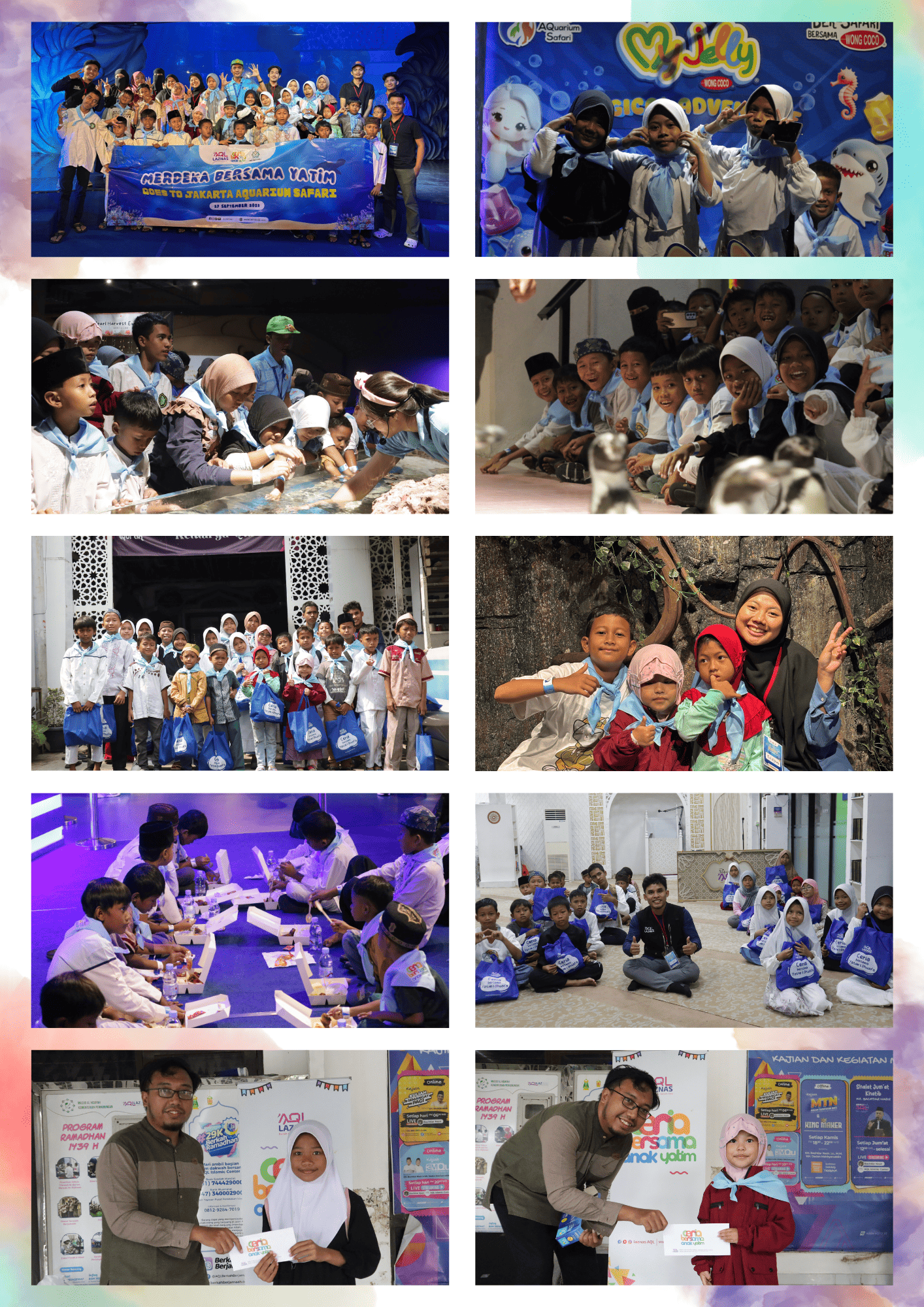 Alhamdulillah di Bulan September ini, kami mengadakan sebuah event bertema "Merdeka Bersama Yatim". Event ini bertujuan untuk memberikan kebahagiaan anak yatim dengan mengajak mereka jalan-jalan ke Jakarta Aquarium Safari dan berkeliling melihat berbagai macam hewan. Dalam event ini, dihadiri oleh 25 anak yatim dengan nominal penyaluran sebesar Rp 13.835.750.